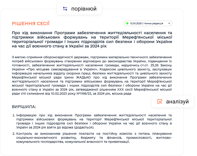 "Ви завжди маєте доступ до актуальної редакції рішення та знаєте, коли та які зміни до нього вносилися."